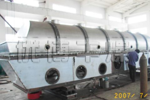 查看詳情焊材干燥機(jī)是由物料自進(jìn)料進(jìn)口進(jìn)入機(jī)內(nèi),在振動(dòng)力作用下,物料沿水平面流化床拋擲,向前連續(xù)運(yùn)動(dòng),熱風(fēng)向上穿過(guò)流化床同濕物料換熱后,濕空氣經(jīng)旋風(fēng)分離器除塵后由排風(fēng)1:3排出.干...